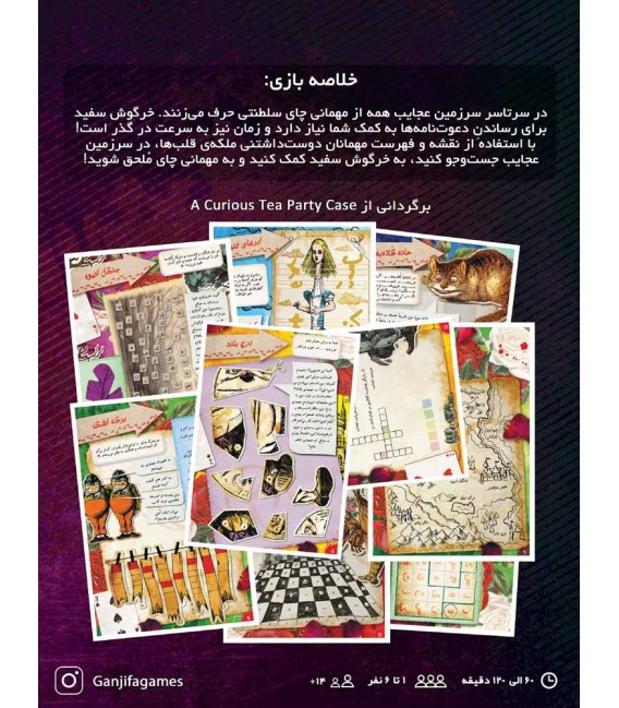 در سرتاسر سرزمین عجایب همه از مهمانی چای سلطنتی حرف میزنند. خرگوش سفید برای رساندنِ دعوتنامهها به کمک شما نیاز دارد و زمان نیز به سرعت در گذر است! با استفاده از نقشه و فهرست مهمانان دوستداشتنی، در سرزمین عجایب جستوجو کنید، به خرگوش سفید کمک کنید و به مهمانی چای مُلحق شوید!