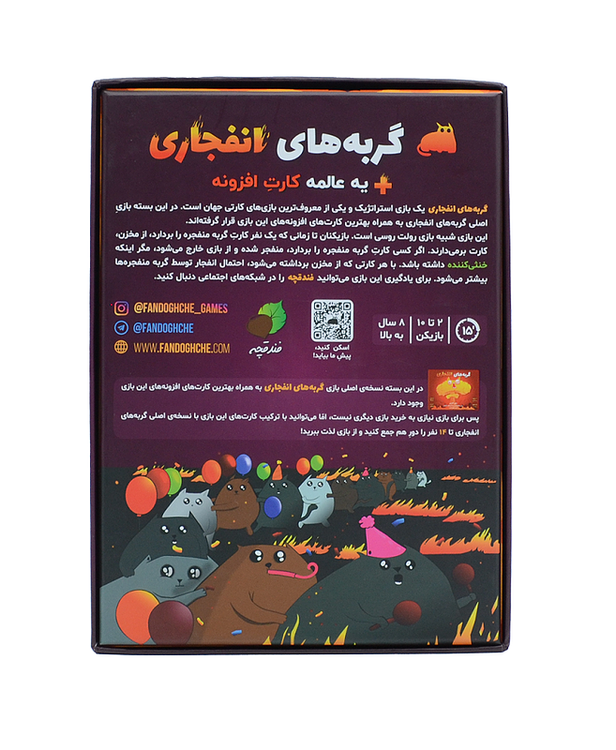 گربه های انفجاری یکی از معروف ترین بازی های جهان است. در این بازی بازیکنان باید از مخزن کارتها، به نوبت کارت بردارند و اگر بازیکنی کارتهای گربه منفجره را بردارد منفجر میشود و از بازی خارج میشود. آخرین بازیکنی که در بازی بماند و منفجر نشده باشد، برنده بازی خواهد بود. بسته گربه های انفجاری پلاس شامل تمامی کارت های بازی اصلی و نسخه های افزونه مجموعه بازی های گربه های انفجاری است. علاوه بر کارت های بازی اصلی، 4 کارت سفید برای طراحی و خلاقیت قرار دارند که بازیکنان میتوانند کارتهای خود را طراحی کنند. با کارتهای موجود در گربه های انفجاری پلاس، 2 تا 10 نفر میتوانند از این بازی لذت ببرند.