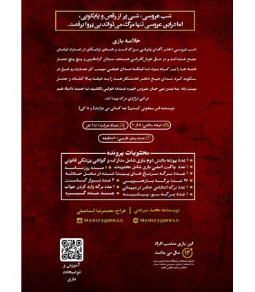خلاصه بازی:شب عروسی دختر آقای وثوقی بزرگ است و همهی نزدیکان در عمارت ایشان جمع شده اند و در حال خوشگذرانی هستند. صدای گرامافون و پچ پچ حضار همه جا را پر کرده بود، تا اینکه صدای جیغی مهیب کل عمارت رو غرق در سکوت کرد. صدای جیغ دختر خدمتکار همه را به طبقه بالا کشاند و حضار بهت زده به بدن بی جان عروس خیره شدند؛ طولی نکشید تا جسد داماد هم در این تراژدی مرگ پیدا شد.
